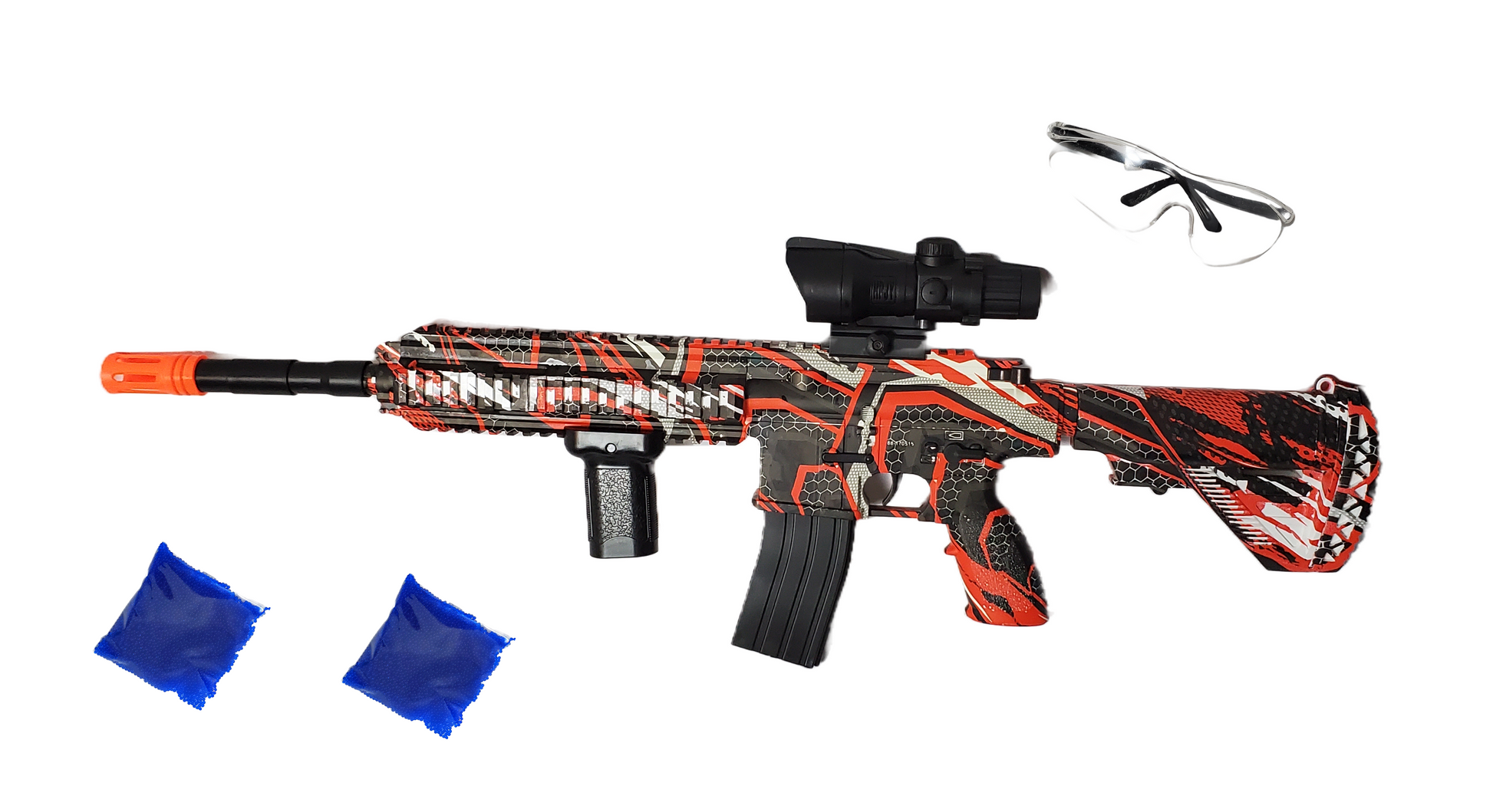 Ready for summer fun? Enjoy fun in the sun with this water-based gel gun Pelistola M416 gellet launcher is a youth outdoor active game. Stimulate your ability to create strategy and enhance physical well-being with this engaging sport. This high-energy game makes for terrific extreme outdoor fun for youthful spirits. Your kit will Include tens-of-thousands of gellets for long battles. Safety goggles included, as well as a rechargeable battery pack, plus usb charger. Gellets are biodegradable and easy to load into the gel gun magazine. Purchase multiple blasters and share this page with all your friends. Join the modern water gun revolution; Don't get left high and dry. Let the gellet battle begin, and may the best man win!
